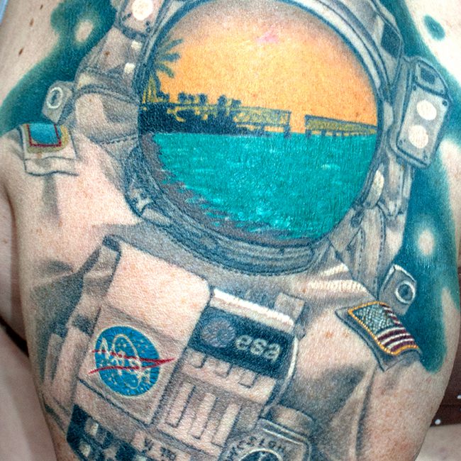 Tattoo-Artist Bammer „Sign of Liberty“ ist seit 2005 immer für mehrere Monate im Jahr zu Gast in Darmstadt. Neben seinem ganz eigenen „Bammerstyle“ beherrscht er viele Stilrichtungen – ob knallbunt oder dezent.